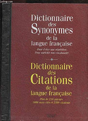 La ligne ci-dessous sont affichées les informations complètes concernant Dictionnaire des synonymes de la langue francaise & Dictionnaire des Citations de la langue francais: